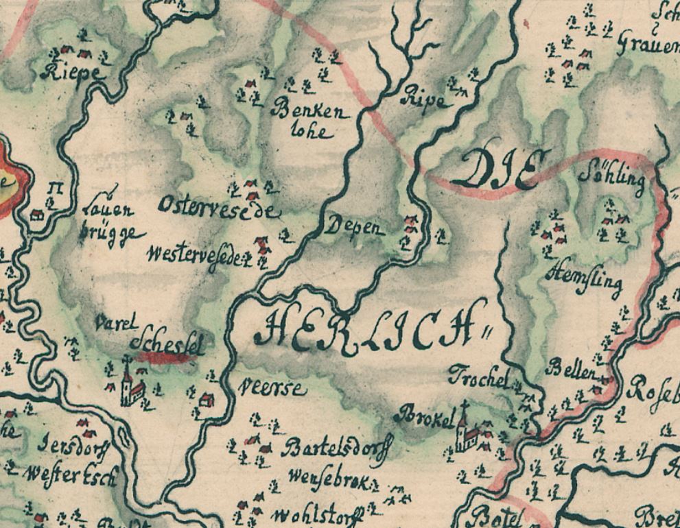 Westervesede in historischen Karten